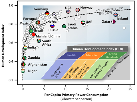 Source: United Nations Development Programme as discussed in http://www.ourenergypolicy.org/growing-poor-slowly-why-we-must-have-renewable-energy/ October 29, 2014 by Dr. Bruce Dale, University Distinguished Professor, Michigan State University, Department of Chemical Engineering